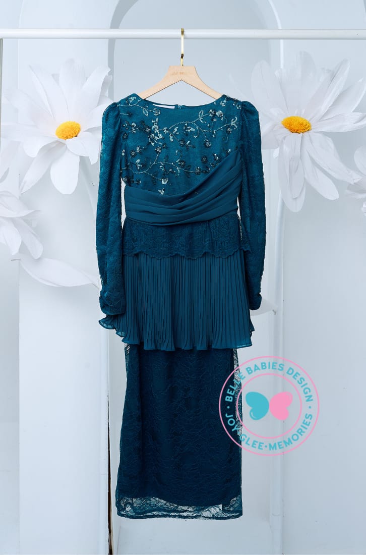 BBD EID 2026: (DEPOSIT-PREORDER) BBD 'Maya' Sequin Pleats Kurung (Teal Blue)